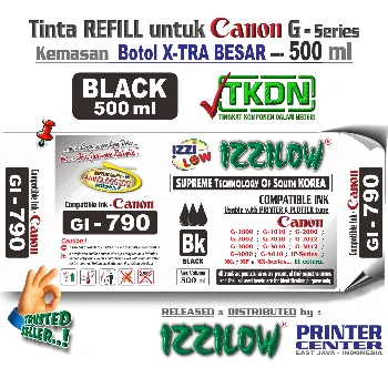 Tinta COMPATIBLE Canon dengan label merek IZZILOW type GI-790 ini didesign dan diproduksi untuk printer Canon type INKTANK / MEGATANK yang termasuk dalam rumpun (cluster) seri G-1000 ; G-1010 ; G-2000 ; G-2010 ; G-3000 ; G-3010 ; G-4000 ; G-4010 ; dsb.
