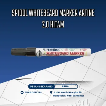 Spesifikasi Artline 2.0 Black untuk spidol papan tulis non-permanen dengan mata pena bullet nib 2.0mm, bodi aluminium standar, mudah dihapus tanpa residu, dan dapat diisi ulang (refillable) dengan tinta Artline