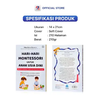 Buku Anak Hari Hari Montessori Untuk Anak Usia Dini Buku Parenting Sinopsis: Dari luar, kemampuan duduk dengan tenang, konsentrasi, dan menyelesaikan tugas hingga tuntas terkesan sederhana dan mudah. Padahal, sebenarnya di dalam tubuh anak sedang terjadi serangkaian proses tumbuh kembang yang dahsyat. Sebelum mengharapkan anak mencapai kesiapan akademis yang mumpuni, sudahkah stimulasi anak di rumah dipenuhi? Apa saja bentuk stimulasi yang dapat orang tua berikan kepada anak sejak usia dini? Pengalaman Vidya dalam dunia pendidikan anak usia dini selama lebih dari 14 tahun dan mengasuh dua anak, telah menginspirasinya menerapkan prinsip Montessori di rumah. Melalui buku ini, Vidya mengungkap hal-hal luar biasa di balik penggunaan aparatus Montessori dan aktivitas bersama anak yang terkesan biasa. Anda juga akan diajak memanfaatkan kegiatan keseharian dan barang-barang yang pasti ada di rumah untuk menstimulasi anak sesuai prinsip Montessori. Rasakan proses merancang stimulasi yang ternyata sederhana, sangat mudah, dan minim stres di rumah. Yuk, pastikan stimulasi anak di rumah terpenuhi, mulai hari ini! Spesifikasi Produk ISBN : 9786022918639 Dimensi (P/L/T) : 14 Cm/ 21 Cm/ 2 Cm Halaman : 228 Jenis Cover : Soft Cover Untuk produk-produk lainnya, silahkan cek etalase di toko kami Produk kami dijamin ASLI dan ORIGINAL Packing aman dan rapi Pastikan Anda follow toko kami untuk mendapatkan voucher dan promo menarik Chat kami untuk menanyakan produk kami Mohon beri ulasan dan rating bintang 5 ya! Jangan lupa membuat Video Unboxing ya! Karena kami tidak akan memproses komplain tanpa ada bukti video unboxing SELAMAT BELANJA :)