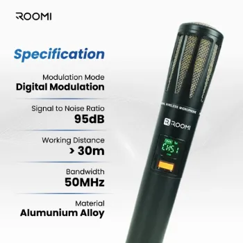 Roomi Harmony EQ Mic Wireless Karaoke Meeting Profesional Digital Audio Processor Bahan Metal Premium Rechargeable.