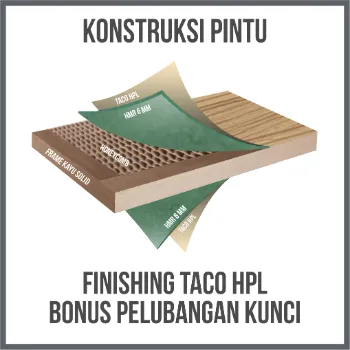 PANTO PREMIUM DOORS dibuat menggunakan lembaran HMR (High Moisture Resistance) pada permukaan pintu sehingga pintu memiliki ketahanan lebih terhadap cipratan air dibandingkan pintu kayu pada umumnya, Rangka PANTO PREMIUM DOORS juga menggunakan SOLID WOOD yang menyebabkan pintu lebih stabil dan tahan terhadap lendutan.