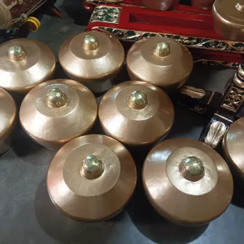 j. 1 set gender : 1 buah Bem, 1 uah Barang, 1 buah Slendro bahan Kuningan