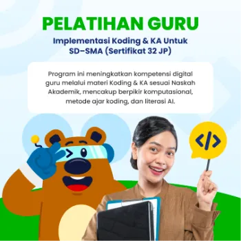 Tingkatkan kompetensi digital pendidik di sekolah dengan program pelatihan guru intensif mengenai Koding dan Kecerdasan Artifisial (KA). Pelatihan ini dirancang secara khusus berdasarkan Naskah Akademik Koding dan Kecerdasan Artifisial (KA) untuk membantu para guru menguasai konsep-konsep teknologi terkini dan mampu mengintegrasikannya secara efektif.