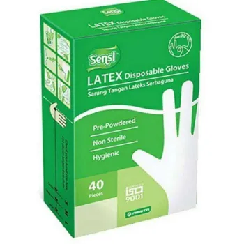 Sarung Tangan Latex Sensi isi 40 Handscoon sarung tangan latex Medis Harga 1 box isi 40 pcs ya kakak Non sterile Pre powdered Ambidextrous Tersedia Ukuran ,S, M, L