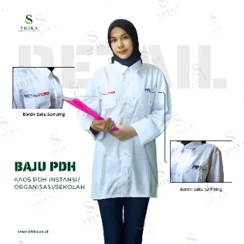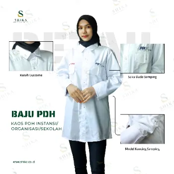 Kemeja PDH atau PDL dengan Bordir logo didepan dan Tulisan Instansi dipunggung belakang, Lengan Panjang. Bisa ganti model lainnya sesuai Request