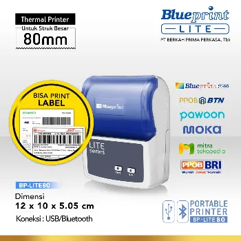 Portable Printer Thermal Label 80 BLUEPRINT BP LITE80 USB + Bluetooth* LABEL STICKER PRINTER THERMAL BP-LTE80 BLUETOOTH Spesifikasi : Metode Cetak : Thermal Lebar Cetak : 72mm Print Density : 578 point / lines Memory Buffer : 2KB Karakter Mesin Cetak : Multi-Fonts Barcode 2D Code Karakter Cetak : ASCII (8*16 12*24) Chinese (16*16 24*24) Control Command set : ESC/POS Koneksi : USB/Bluetoot Bluetooth : 4.0 Lebar Kertas : 79.5 mm +/- 0.5 x 40 mm Support Driver : Support Windows Power Supply : USB 5V 2A Pemotong Kertas : Manual Kapasitas Baterai : Baterai Lithium 7.4/1400MHA Waktu Pengisian : 2/Jam Printhead : >50KM Temperatur : 0-50C 10-90% Isi dalam packet : * Printer Unit BP-LITE58 * Power Adaptor * Kabel USB * Power Supply * 1 Roll Sticker 78x100x40mm GARANSI 1 TAHUN (FULL SERVICE) NOTE : Printer Bisa menggunakan Kertas Thermal 80x47mm - (Perlu di gulung ulang agar kertas bisa masuk kedalam printer) Kertas Sticker 78x30 Meter Continous (tanpa Gap - (Perlu di gulung ulang agar kertas bisa masuk kedalam printer)