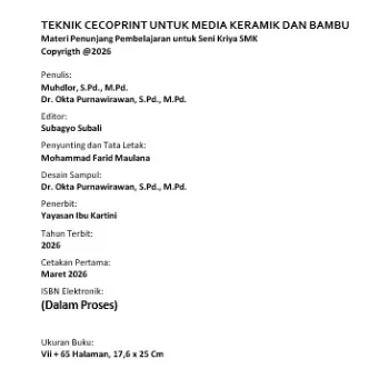 Ecoprint merupakan teknik transfer pigmen alami dari tumbuhan ke permukaan media melalui proses panas dan tekanan. Selama ini, praktik ecoprint lebih dikenal pada tekstil. Buku ini menghadirkan pendekatan yang lebih luas dan mendalam dengan mengeksplorasi penerapan ecoprint pada material keras, khususnya keramik dan bambu.
